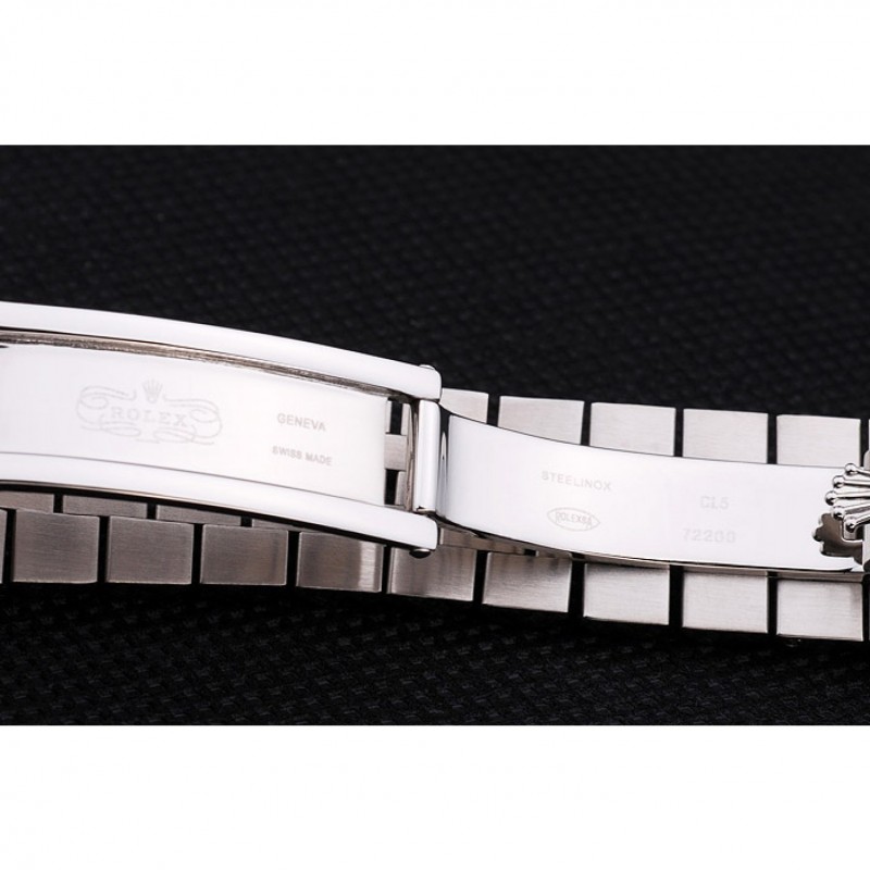 La montre se distingue également par son cadran blanc classique et son boîtier de 45 x 37 mm, qui se marie parfaitement avec le bracelet en acier inoxydable brossé et poli. La couronne et la lunette, toutes deux en acier inoxydable poli, affichent le logo Rolex, ajoutant une touche d’authenticité à ce modèle répliqué. Bien que ce soit une réplique, elle offre une expérience similaire aux montres originales, incluant un cristal saphir ultra-résistant, garantissant clarté et durabilité. De plus, cette montre est résistante à l’eau, mais il est important de noter qu’elle n’est pas waterproof. Nous déconseillons de l’utiliser lors de la baignade ou de la douche, car cela annulerait la garantie.